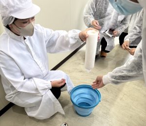 採水や衛生処理の方法、そして迅速にお客様にお届けするための努力を学びます。